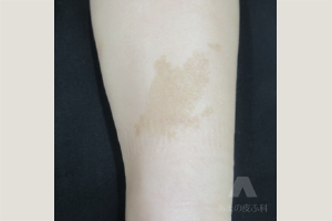2025年10月09日 扁平母斑 扁平母斑(左下腿)・初診時3歳2ヶ月 Qスイッチレーザー 初診時レーザー2回施行後6ヶ月 施術内容Qスイッチルビーレーザー(3ヶ月に1回、トータル2回)料金保険診療リスク水疱、脱色素斑、色素沈着