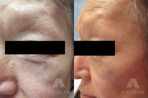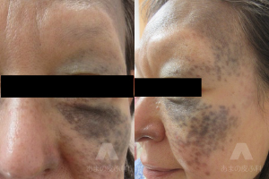 2025年10月09日 太田母斑 太田母斑(左上下眼瞼、額、頬)・50代女性 Qスイッチレーザー 治療前レーザー7回施術後7ヶ月 施術内容Qスイッチルビーレーザー(3~7ヶ月毎に1回、トータル7回)料金1~5回目:保険診療6・7回目:¥110,000税込/回 計¥220,000税込(Qスイッチルビーレーザーの保険適応は5回までのため保険外診療で追加照射)リスク水疱、脱色素斑、色素沈着