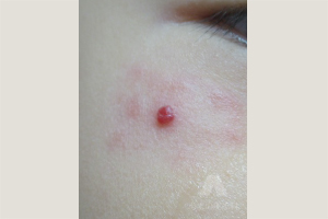 2025年12月01日 顔面毛細血管拡張 血管拡張性肉芽腫(頬)・初診時1歳4ヶ月 ダイレーザー 初診時レーザー3回施行後3ヶ月施術内容Vビーム(1〜2ヶ月に1回、トータル3回)料金保険診療リスク水疱、色素沈着、紫斑、脱色素斑