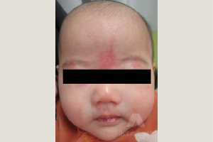 2025年12月01日 毛細血管奇形 正中部母斑(サーモンパッチ)(額・眉間・上眼瞼・上口唇)・初診時3ヶ月 ダイレーザー 初診時レーザー6回施行後3ヶ月施術内容Vビーム(額・眉間・上口唇)(3〜4ヶ月に1回、トータル6回)料金保険診療リスク水疱、色素沈着、紫斑、脱色素斑